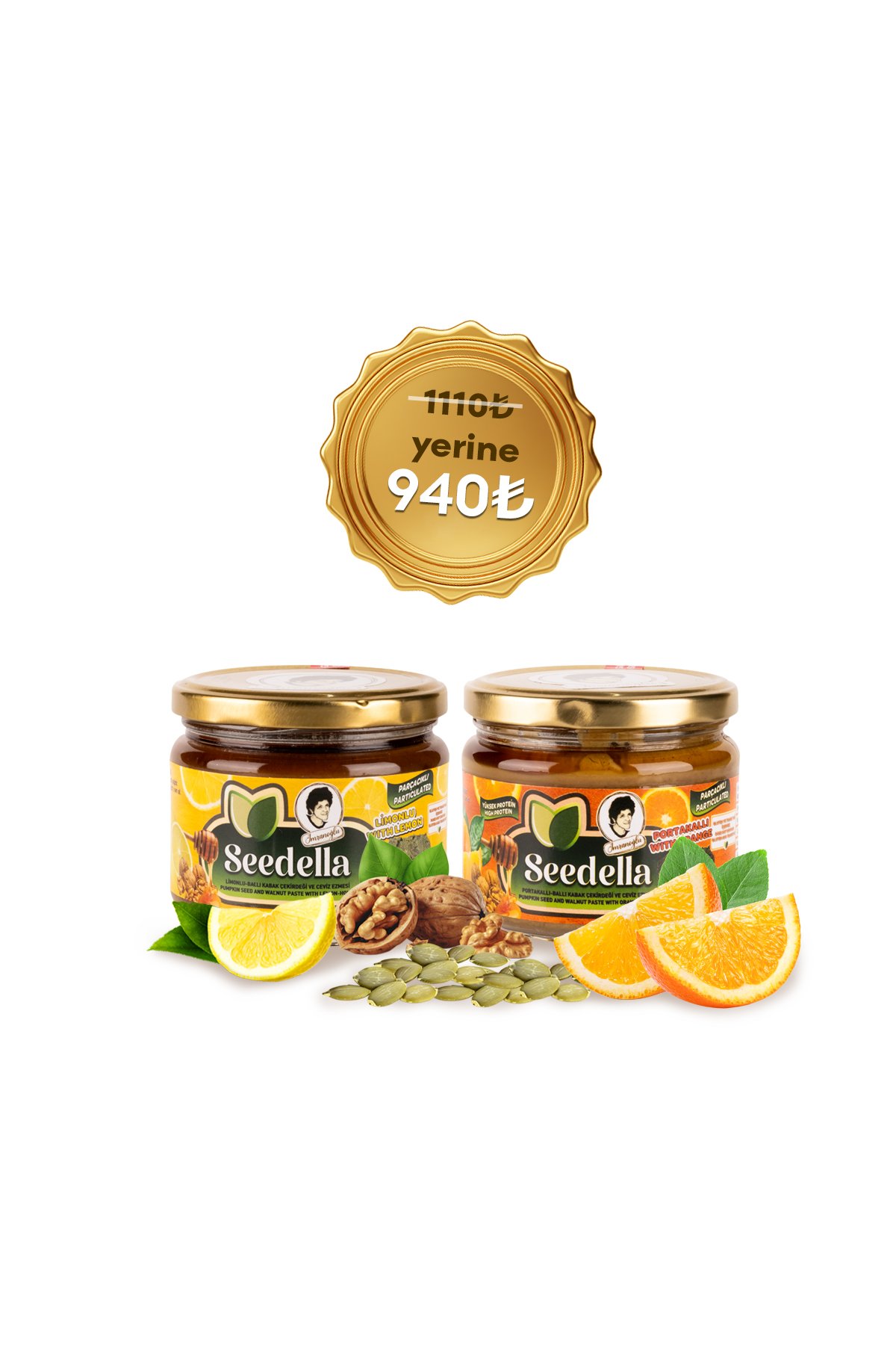 Fırsat PaketleriLimonlu Ballı Cevizli Kabak Çekirdeği Ezmesi 300 gr & Portakallı Ballı Cevizli Kabak Çekirdeği Ezmesi 300 gr