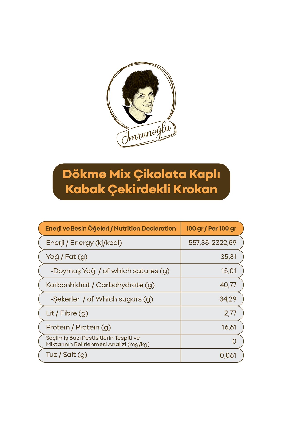Kabak çekirdeğinin çıtır dokusunu çikolatanın yumuşak lezzetiyle buluşturan bu özel karışım; sütlü, bitter ve beyaz çikolata kaplı tanelerin aynı pakette yer aldığı “mix” bir atıştırmalıktır. Her lokmada farklı bir tat yakalamak isteyenler için hem keyifli hem de paylaşmalık bir alternatiftir.