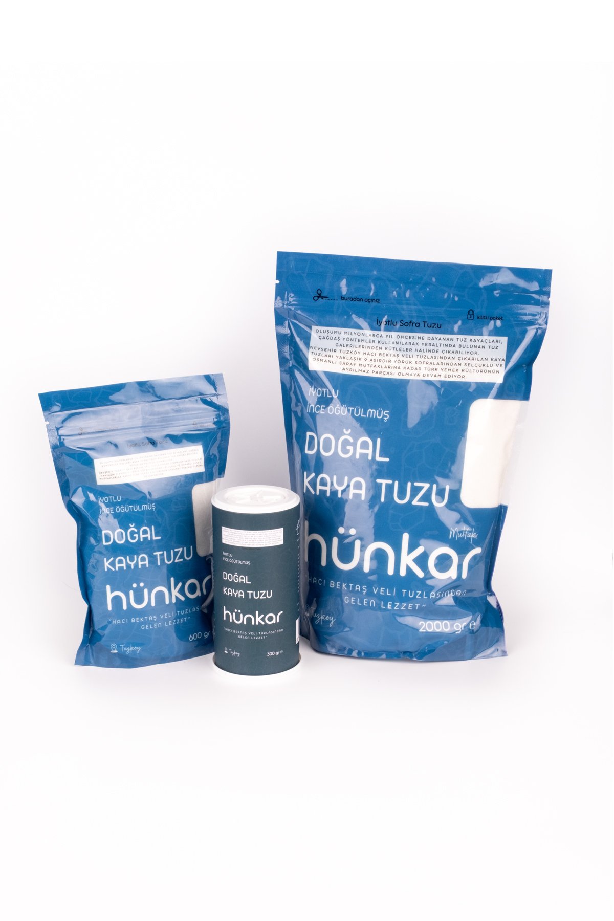 Sofralarda pratik kullanım için 300 g iyotlu ince öğütülmüş doğal kaya tuzu. İnce tane yapısı sayesinde yemeklere hızlı karışır; sofrada kontrollü kullanım sağlar. Yeraltı tuz galerilerinden çıkarılan tuz kütleleri; seçme, yıkama ve kurutma süreçlerinden sonra ince öğütülerek paketlenir.