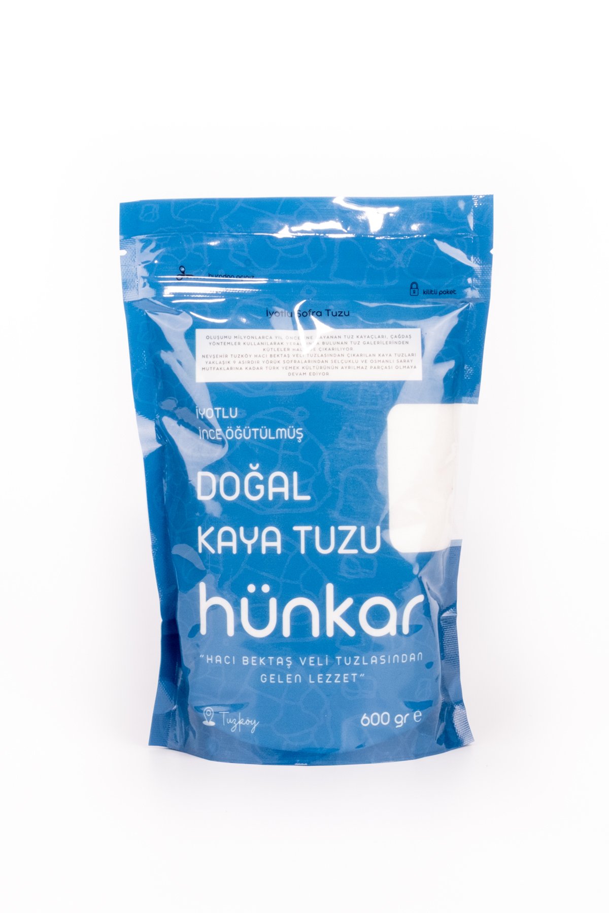 Günlük mutfak temposu için ideal gramaj: 600 g iyotlu ince öğütülmüş doğal kaya tuzu. Yeraltından çıkarılan tuz kayaçları modern yöntemlerle işlenir; seçilir, yıkanır ve kurutulur. Son aşamada ince öğütülerek yemeklerde dengeli dağılım ve pratik kullanım hedeflenir.
