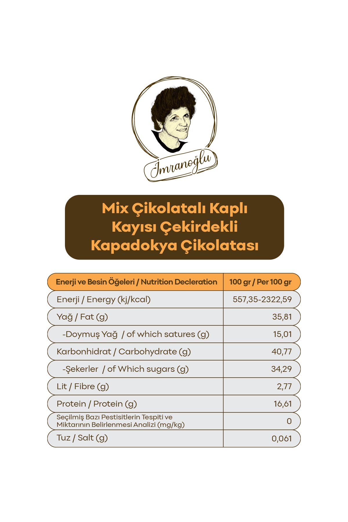 İmranoğlu Kapadokya serisinin Mix Çikolata Kaplı Kayısı Çekirdeği, hem bitter hem de sütlü çikolatayı sevenler için tek pakette iki farklı tat sunar. Özenle kavrulmuş kayısı çekirdekleri, bir kısmı yoğun aromalı bitter, bir kısmı ise yumuşak içimli sütlü çikolata ile kaplanarak dengeli bir karışım hâline getirilir.