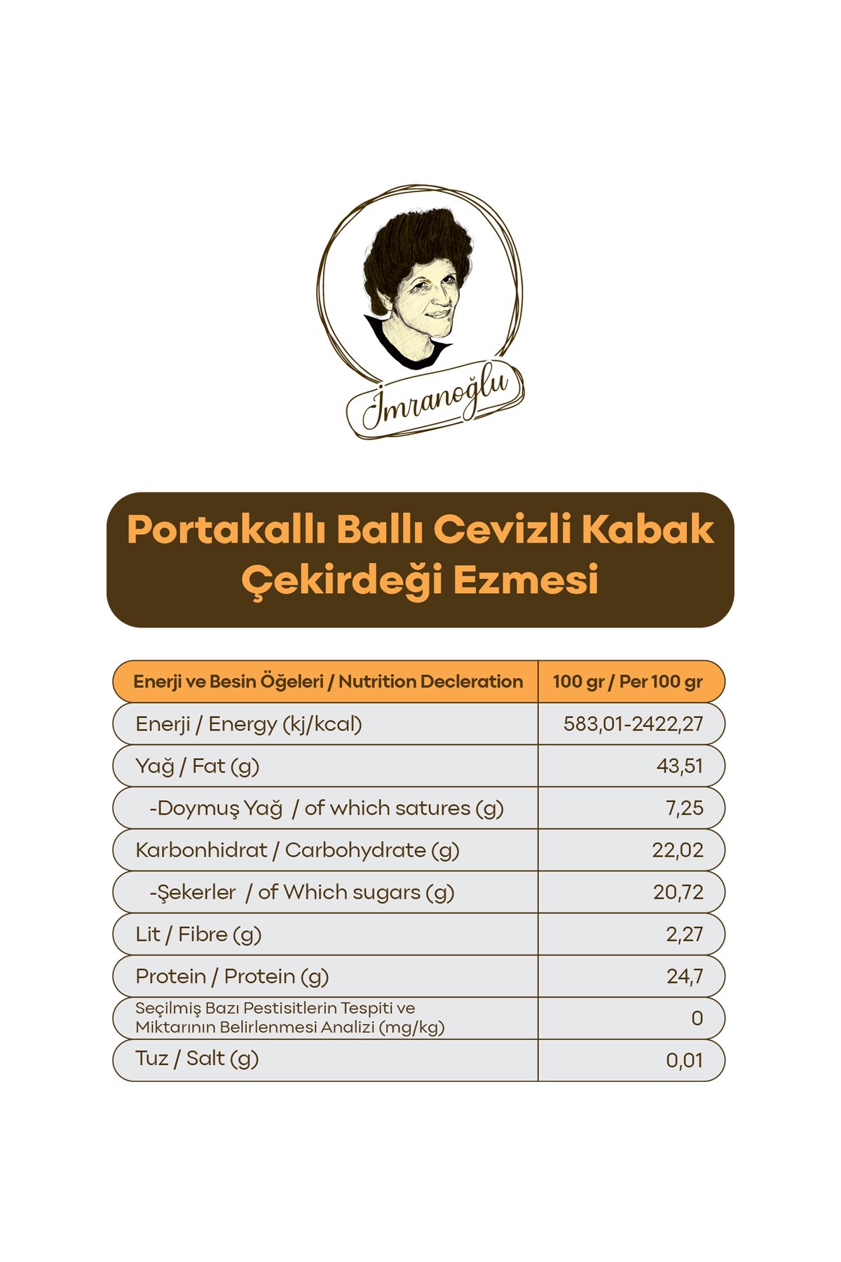 - Doğal Portakal, Bal ve Ceviz: Kabak çekirdeğinin eşsiz tadı, portakalın ferahlığı, doğal bal ve cevizle mükemmel uyum içinde.